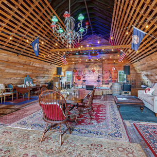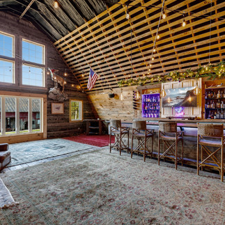Originally constructed in 1950 as a working dairy barn, the building's bones — heavy timber framing, soaring interior volumes, the patina of seven decades of honest agricultural use — were honored and restored rather than replaced. What emerges is a structure that carries the soul of the land while meeting every expectation of the modern entertainer. Across approx. 2,400 sq. ft. on two levels, the barn now offers a full bathroom, dedicated laundry, and a fully equipped bar on the main floor. The upper entertainment level rises into the original timber volume, with a dedicated stage at one end. Full water, sewer, and approx. 100-amp electrical service are in place, supporting any future build-out a new owner might pursue.