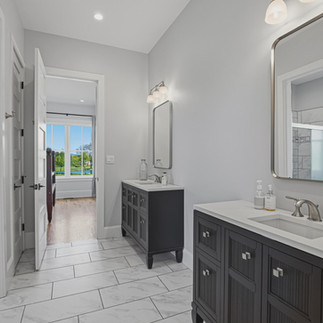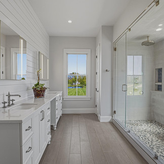 Behind the visible finishes is the engineering that gives the residence its long durability. The building envelope features 2x6 framing, a continuous thermal break system, and open-cell spray foam insulation — approx. 5 in. in the walls, approx. 10.5 in. in the roof. Andersen 400 Series clad wood windows and Andersen A-Series 8 ft. doors. GAF Timberline Ultra HD shingles. James Hardie prefinished fiber cement siding. A brick watercourse on all four sides. Three-zone Lennox Elite Series heat pumps with ERV air exchangers and electronic filtration. Dual Rinnai tankless water heaters. Whole-house water filtration and softening. 400-amp electrical service with Generac generator readiness. Deako smart lighting throughout. These are the specifications of a builder constructing for the long horizon, not the resale.